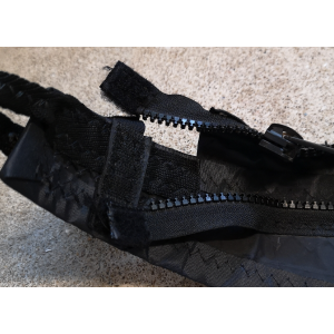 - Vorderkante mit Zip, Abschluss oben wie abgebildet mit Klettverschluss.