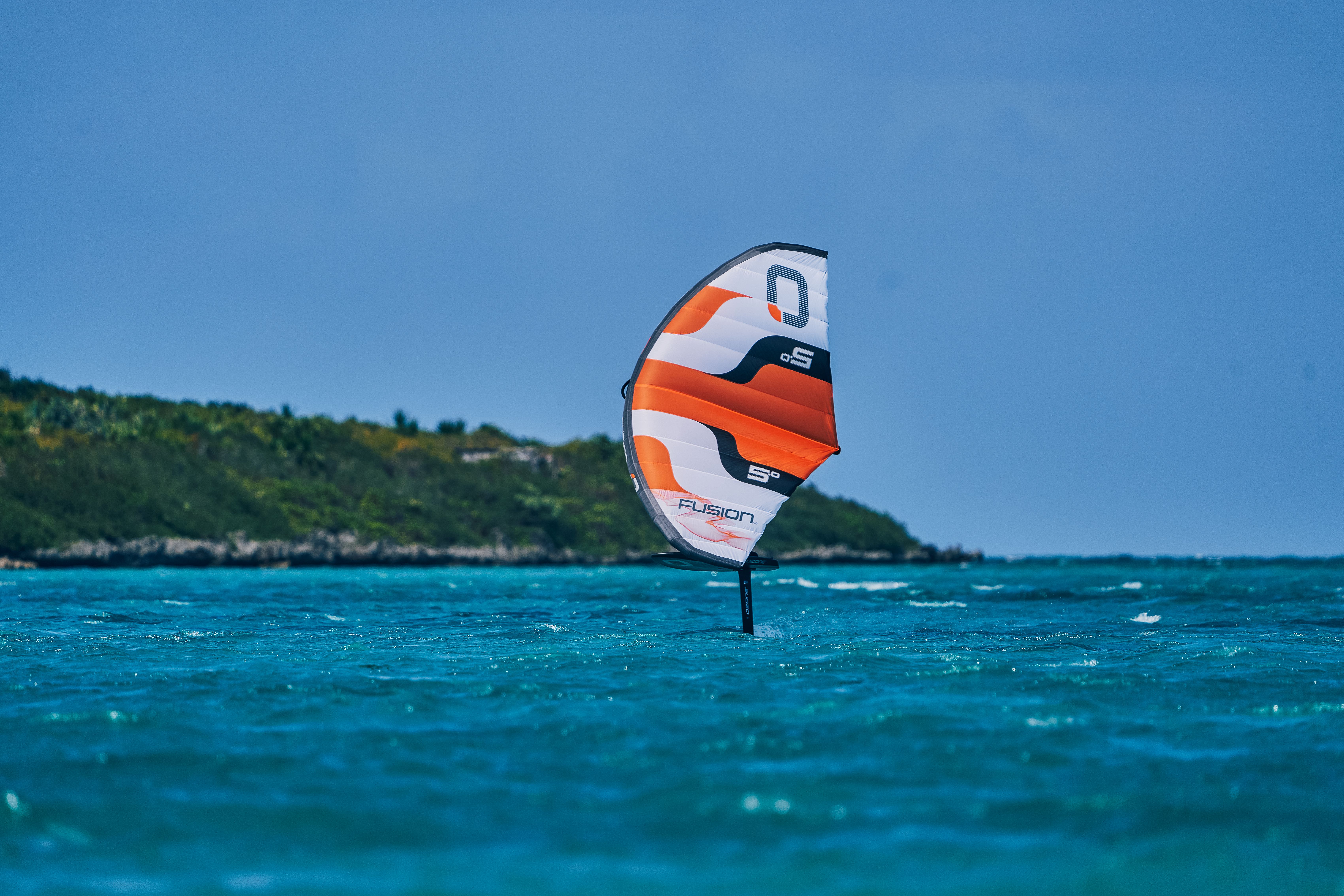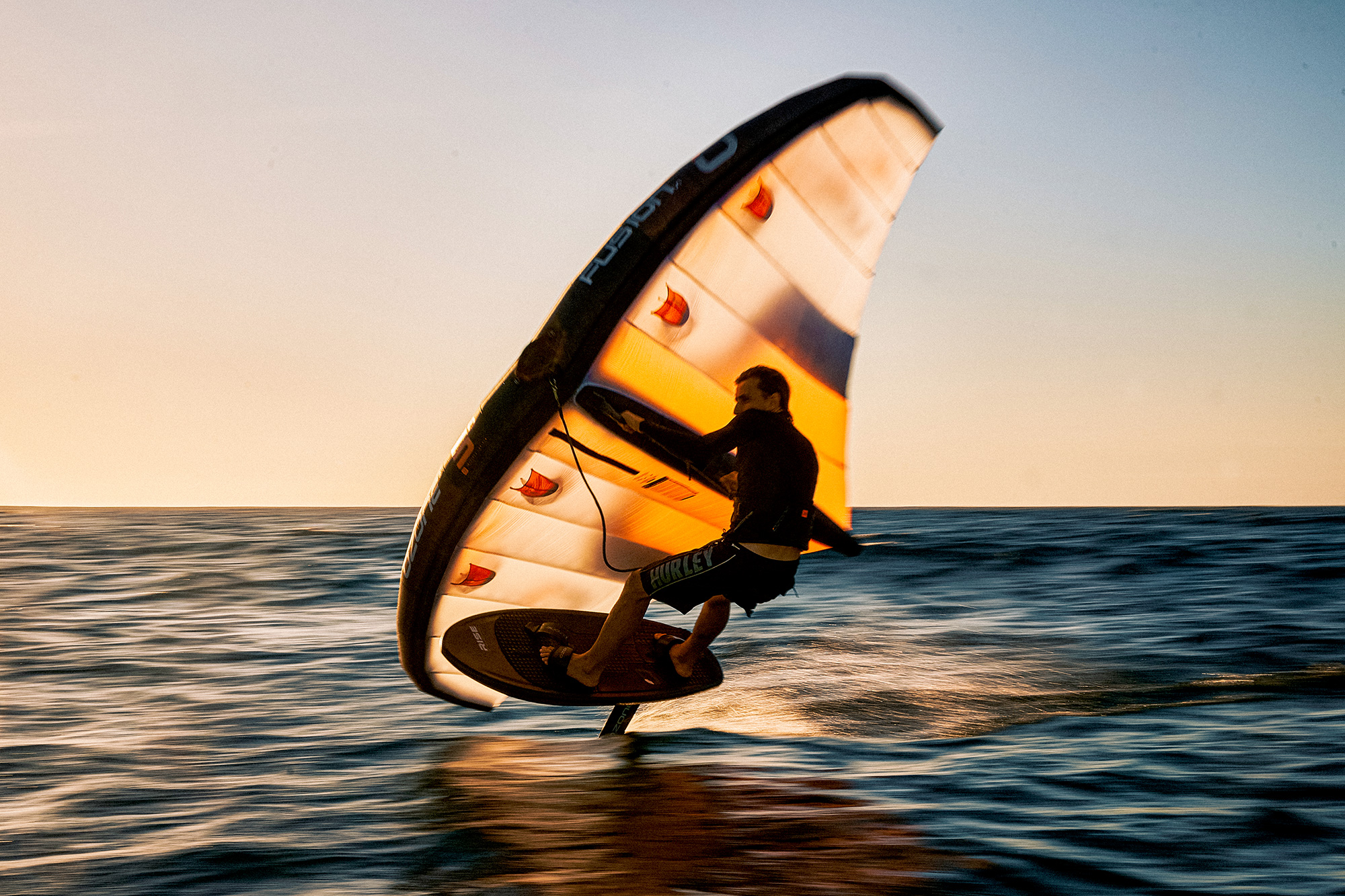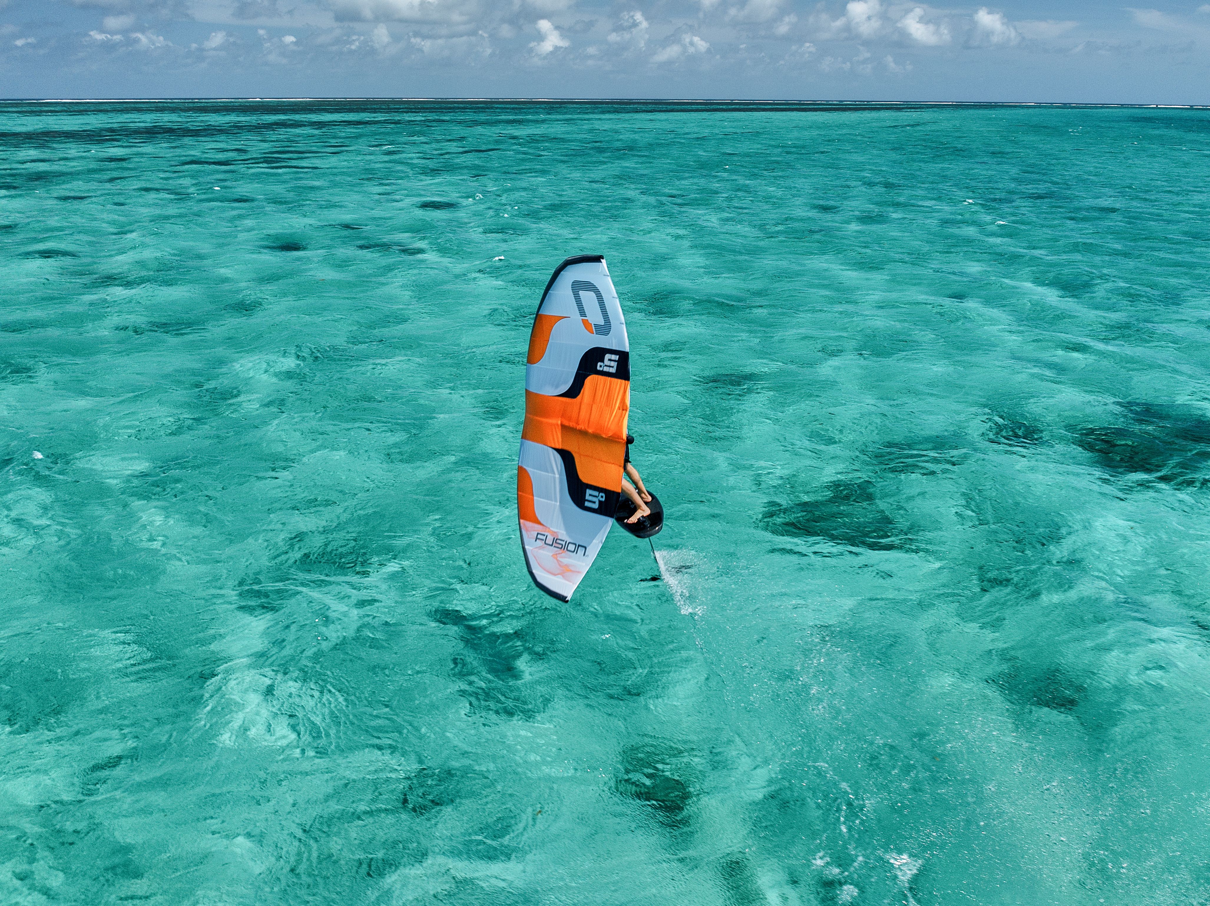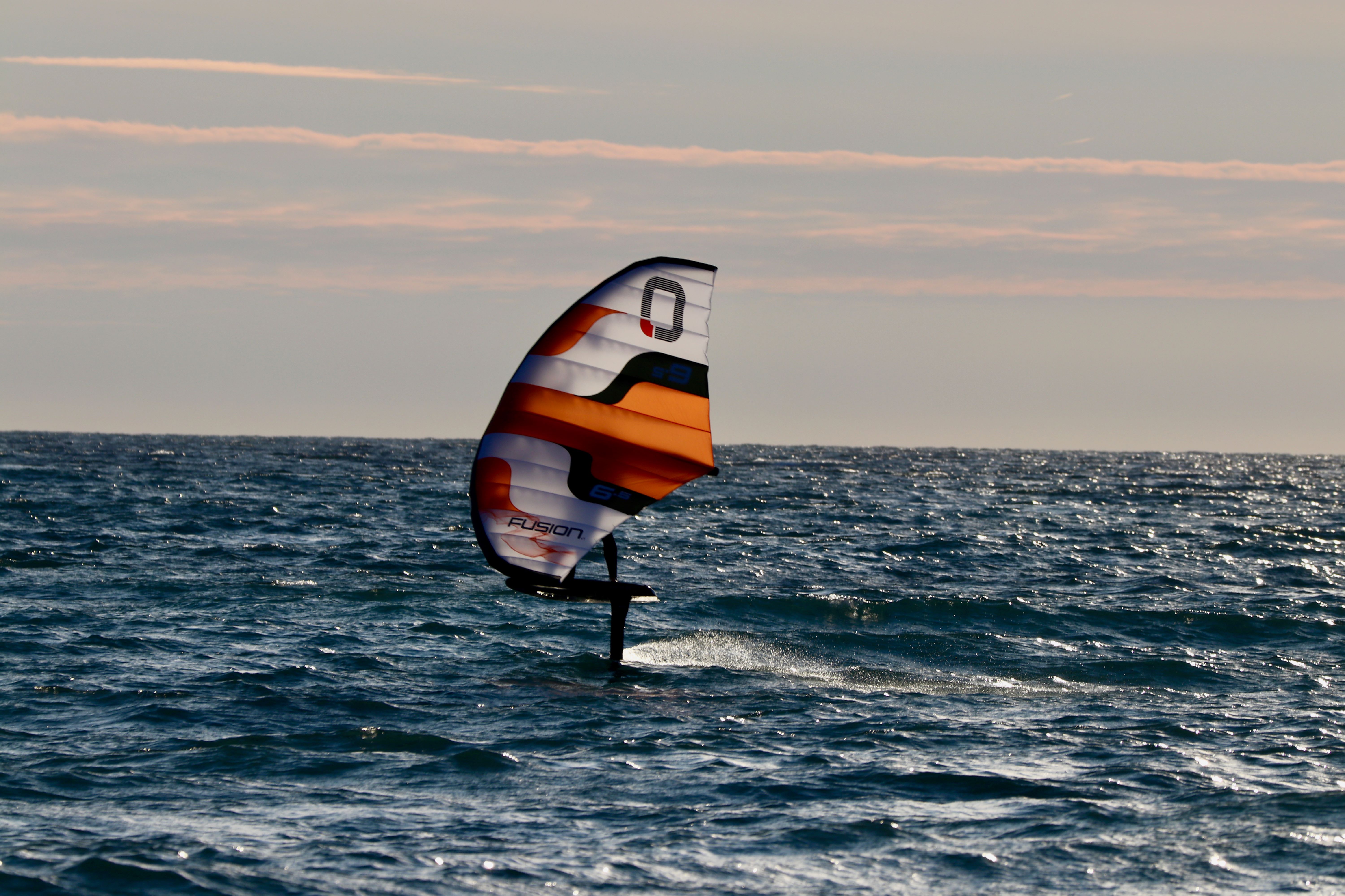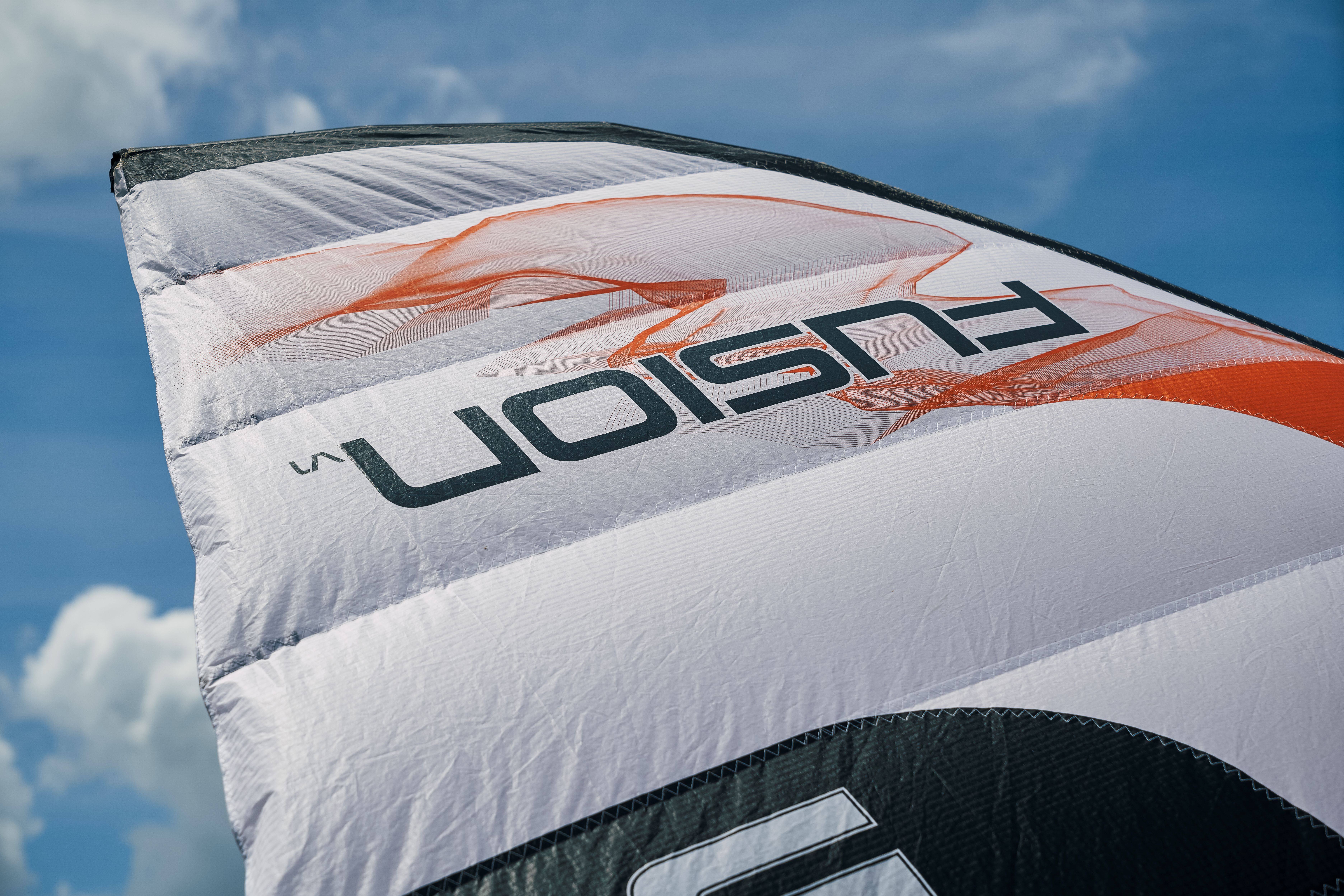 The Fusion wing is designed around the high-performance planform of the Flux, including the pre-loaded leading edge, which is made with stiff performance dacron and experiences drastically less deformation in strong conditions.